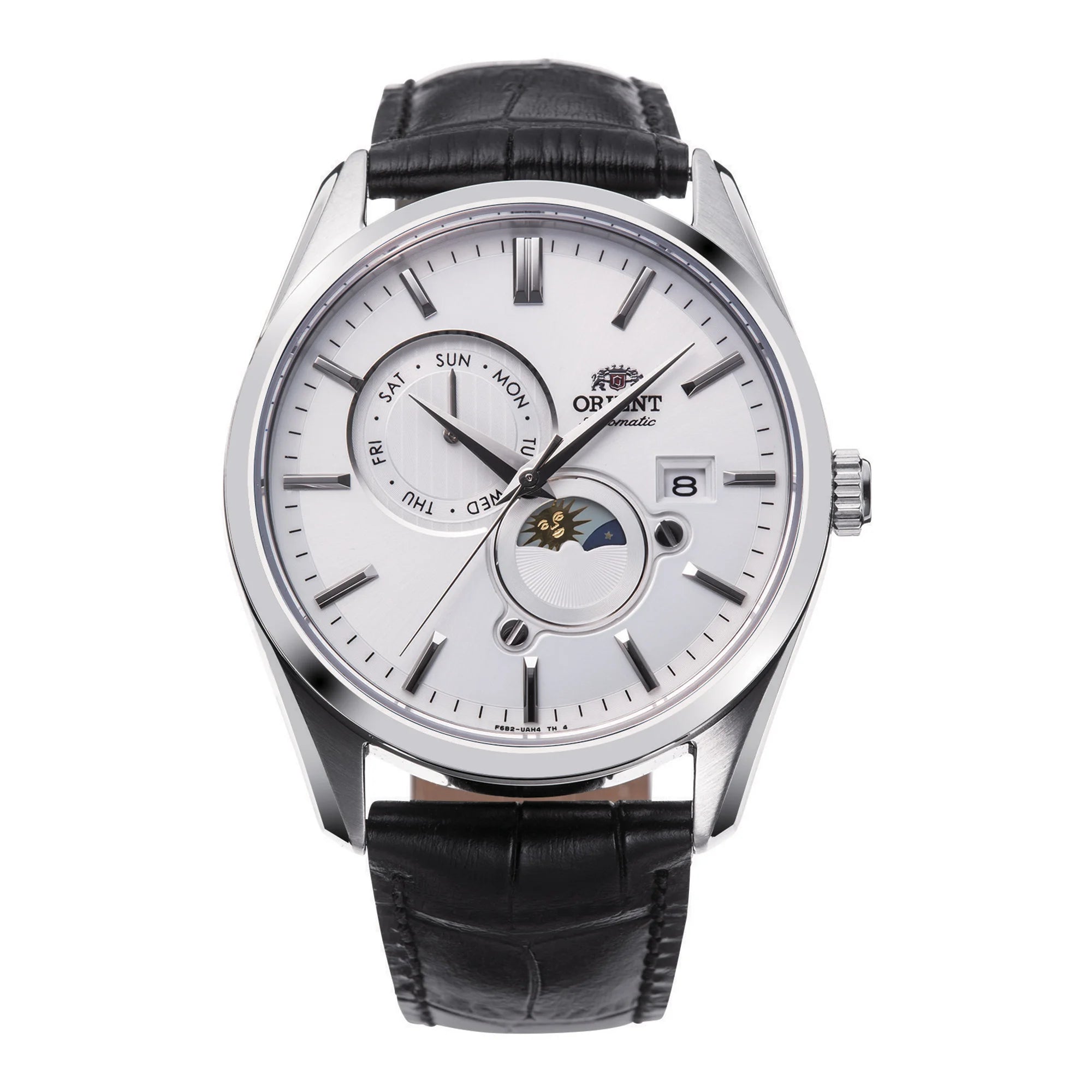 Complicazione giorno/notte al centro del progetto, con un disco illustrato che accompagna lo scorrere delle ore. Il quadrante adotta una disposizione a più contatori per data e giorno, mantenendo ordine e leggibilità. Indici applicati o numeri romani, minuteria precisa e sfere affusolate definiscono un linguaggio classico. Finiture radiali o sfumate aggiungono profondità, mentre cinturini in pelle e bracciale in acciaio ampliano le possibilità di abbinamento.