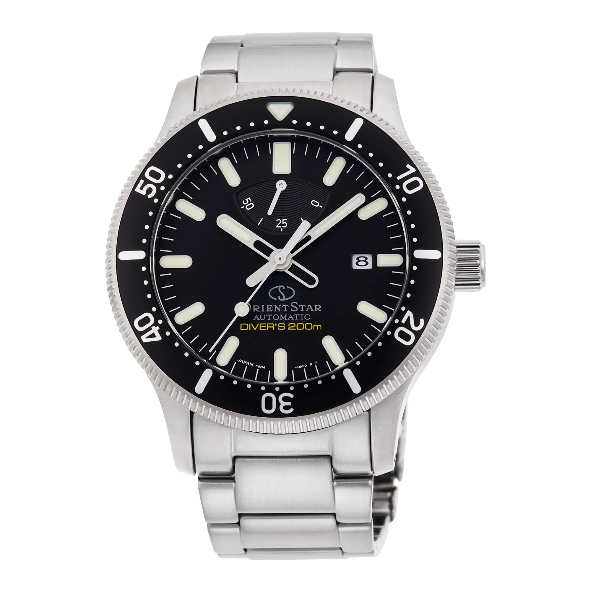 Scopri la collezione ORIENT Sports, dove la precisione giapponese incontra la robustezza ideale per ogni avventura. Presentiamo un orologio ORIENT STAR della linea Sport, strumento ideale per gli appassionati di immersioni e di stile dinamico. Questo orologio automatico da uomo incarna l'eccellenza, combinando design e funzionalità subacquee di alto livello. La cassa rotonda in acciaio inossidabile, con un diametro di 43mm e uno spessore di 14mm, assicura una presenza importante al polso. La sua costruzione robusta garantisce un'impermeabilità professionale "Diver's 200mt" (20 bar). Il fondello e la corona a vite contribuiscono a sigillare ermeticamente l'orologio, mentre la ghiera unidirezionale con funzione conto alla rovescia è essenziale per la sicurezza nelle immersioni. A protezione del quadrante, il vetro zaffiro antigraffio offre chiarezza impeccabile e resistenza superiore, tipica degli orologi di alta gamma. Lancette e indici luminescenti garantiscono leggibilità ottimale in ogni condizione di luce, anche nelle profondità marine. Il cuore pulsante è il calibro di manifattura ORIENT F6N47, un movimento meccanico a carica automatica con manuale e funzione di fermo macchina. Con 22 rubini, offre precisione affidabile (+25/-15 secondi al giorno) e una pratica funzione data. Un indicatore di riserva di carica sul quadrante permette di monitorare l'autonomia, assicurando che sia sempre pronto. Il robusto cinturino, con larghezza ansa di 22mm, si chiude con una chiusura déployante con pulsante e blocco di sicurezza, offrendo comfort e sicurezza nell'uso sportivo. Con 208 grammi, questo orologio sportivo da uomo è solido e ben bilanciato al polso. L'ORIENT STAR Diver è un compagno affidabile per le tue esplorazioni. Completo di garanzia internazionale ORIENT STAR di 2 anni, rappresenta un investimento in qualità e prestazioni. Questo orologio automatico in acciaio, con vetro zaffiro e certificazione subacquea, è la scelta perfetta per chi cerca un segnatempo resistente, preciso e dal design inconfondibile.