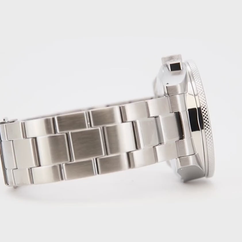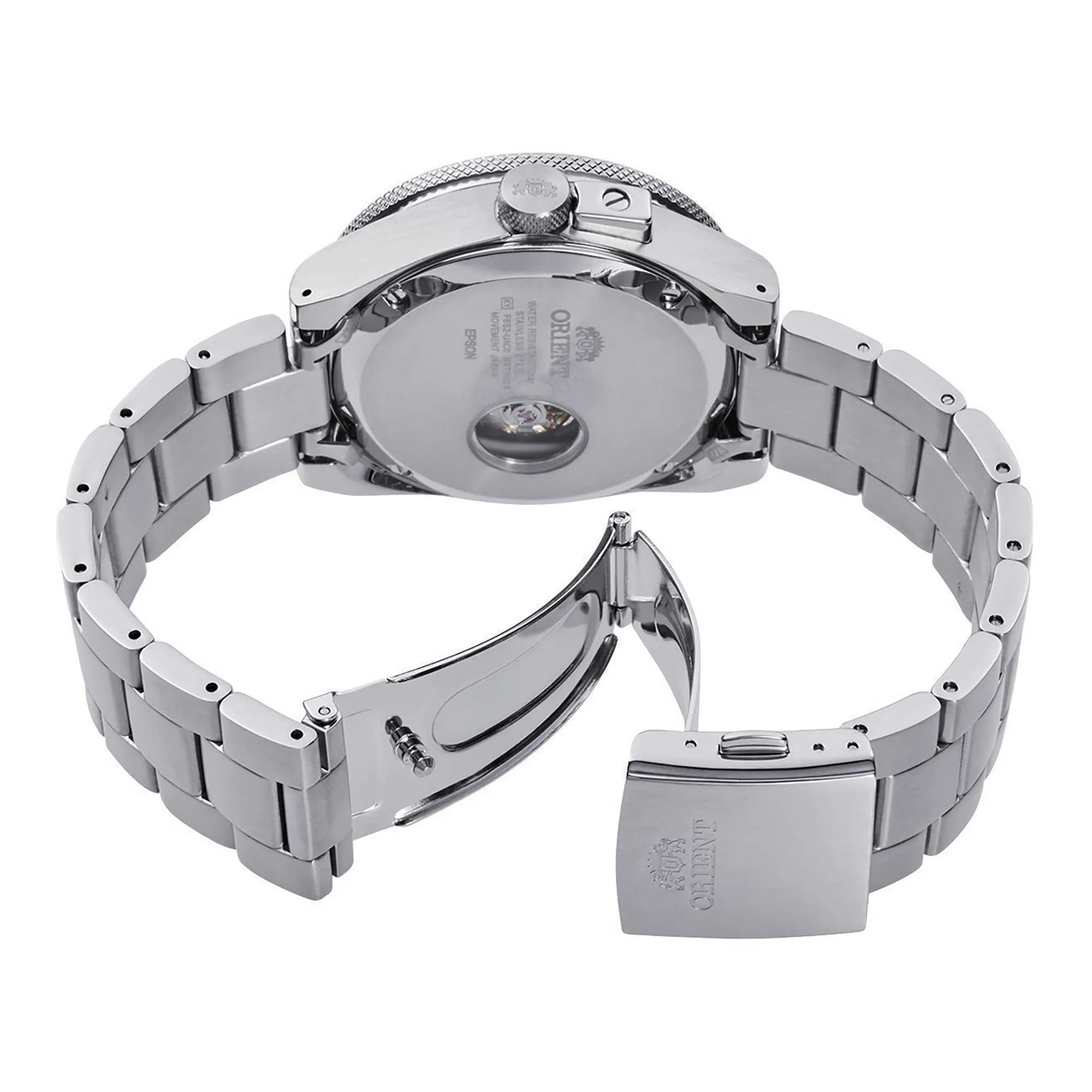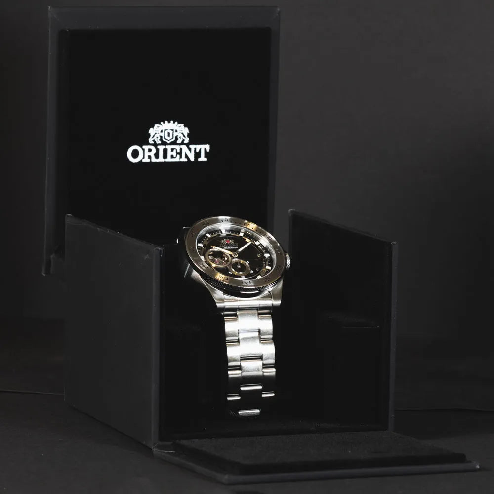 Retro Future Camera, fiore all’occhiello della famiglia ORIENT Sport, è un modello speciale che incorpora funzionalità e design reminiscenze della classiche fotocamere a telemetro degli anni ’50. Il quadrante, infatti, ricorda le lamelle del diaframma, la lunetta ricorda la sua ghiera di apertura, la corona e la sua protezione sono ispirate alla manopola di riavvolgimento e la parte superiore quadrata di una copertura della fotocamera. Qui in versione braccialata acciaio con quadrante nero.