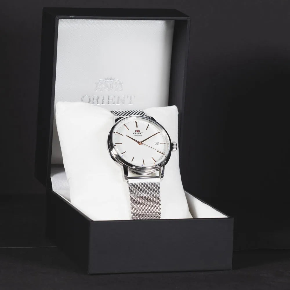 Scopri la collezione Contemporary di ORIENT, una linea che combina eleganza e affidabilità meccanica. Il modello Stylish Maestro è pensato per l’uomo che apprezza la precisione e un design senza tempo, adatto a ogni occasione, dal quotidiano alle situazioni più formali. Un orologio che coniuga stile e funzionalità, riflettendo la cura costruttiva e l’identità del marchio ORIENT. Il movimento automatico ORIENT Calibro F6722, dotato di 22 rubini, offre una precisione stimata di +25/-15 secondi al giorno. Supporta sia la carica automatica che quella manuale e include la funzione di fermo macchina (hacking), che consente una regolazione precisa dell’ora. Il fondello trasparente a vite permette di ammirare il movimento in azione, valorizzando il fascino della meccanica interna e l’attenzione ai dettagli che contraddistinguono questo modello.La cassa rotonda in acciaio inossidabile, con diametro di 40 mm e spessore di 12 mm, garantisce proporzioni equilibrate e una presenza raffinata al polso. La resistenza all’acqua fino a 100 metri (WR 100mt) lo rende adatto all’uso quotidiano, anche in situazioni dinamiche o attività leggere in acqua. Il vetro minerale protegge il quadrante, offrendo una buona resistenza ai graffi, mentre la corona a pressione consente un utilizzo pratico e immediato. Il cinturino, con larghezza di 20 mm e lunghezza di 19 cm, si adatta ergonomicamente al polso, offrendo comfort durante l’intera giornata. La chiusura deployante pieghevole con pulsante assicura stabilità, praticità e sicurezza, rendendo il modello adatto a un uso continuativo. Il modello Stylish Maestro rappresenta una perfetta sintesi tra sobrietà e personalità, ideale per chi desidera un orologio automatico affidabile e versatile, capace di integrarsi con diversi stili. È una scelta di carattere per l’uomo che ricerca equilibrio tra design contemporaneo e meccanica tradizionale. L’orologio viene fornito nella confezione originale ORIENT, completo di manuale d’uso e garanzia internazionale di 2 anni, a conferma dell’impegno del marchio verso qualità, durata e soddisfazione del cliente.
