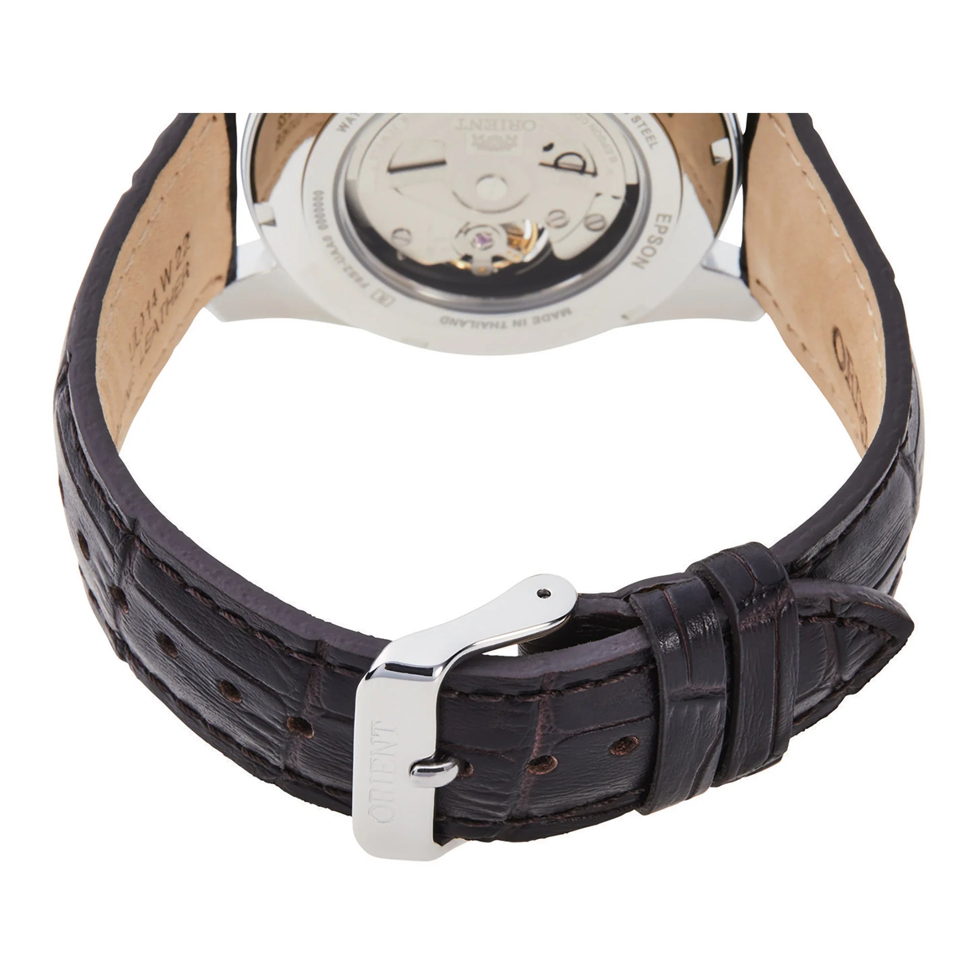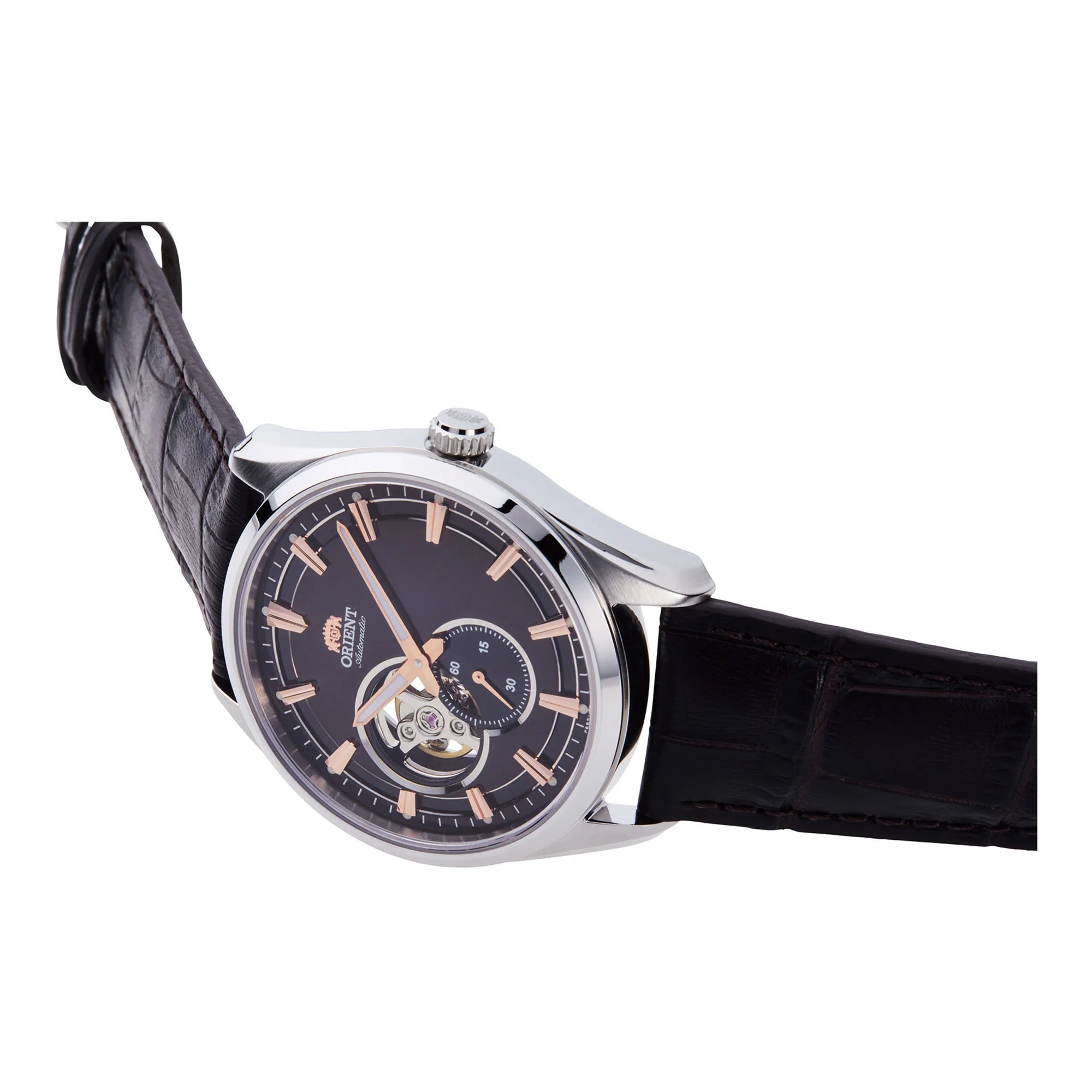 Quadrante con anima a vista e piccoli secondi in dialogo: la finestra semi-skeleton si sovrappone al contatore creando profondità e ritmo. Cassa dal segno deciso e grafica ordinata privilegiano la leggibilità, mentre finiture radiali e palette dal bianco all’azzurro, al verde e al rosso aggiornano l’estetica. Il fondello trasparente svela il movimento di manifattura. Il bracciale in acciaio completa un equilibrio tra carattere tecnico ed eleganza quotidiana.