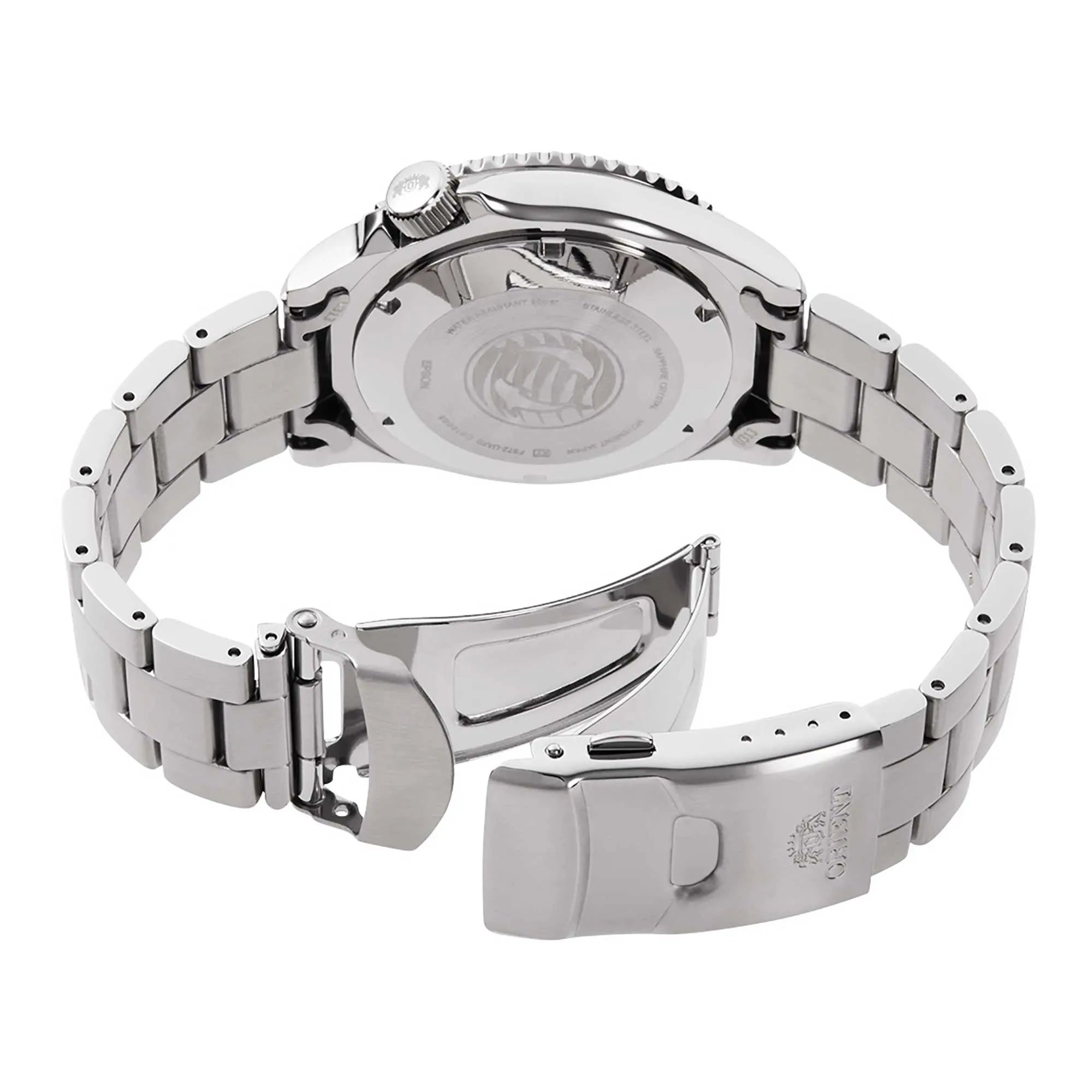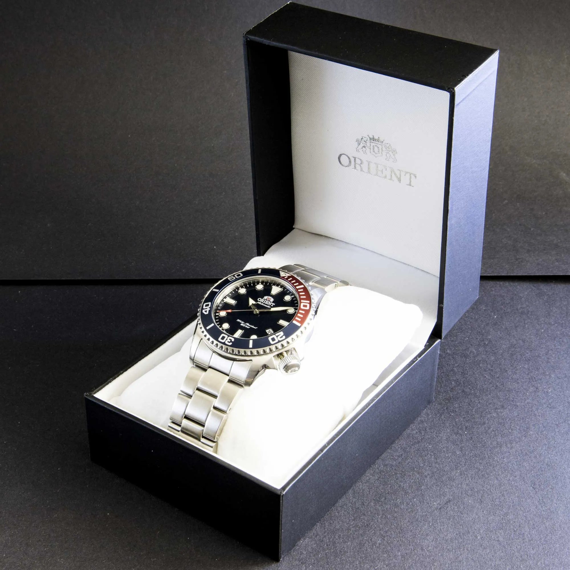 Risultato di un’evoluzione decennale, Triton è un tradizionale esemplare di segnatempo tipicamente Diver, punta di diamante della famiglia ORIENT Sport. La corona ad ore 4 incontrerà il favore di chi ricerca comodità, indossabilità e facilità nelle operazioni in condizioni di sfida subacquea. Adatto anche ad essere indossato in contesti urbani, presente una elevata visibilità anche al buio grazie alla luminescenza di indici e sfere. Qui in versione con bracciale acciaio, quadrante blu e ghiera rossoblu (pepsi)