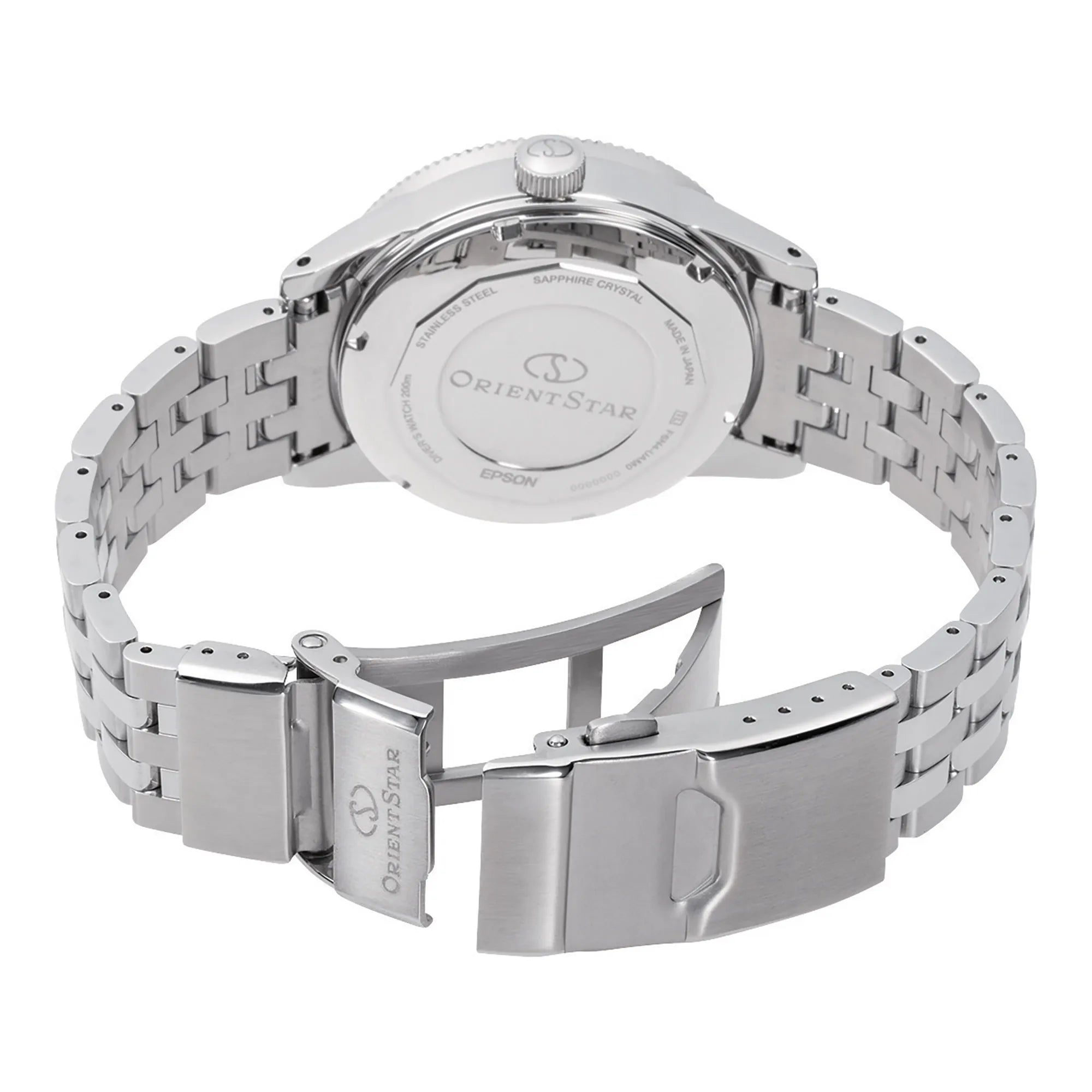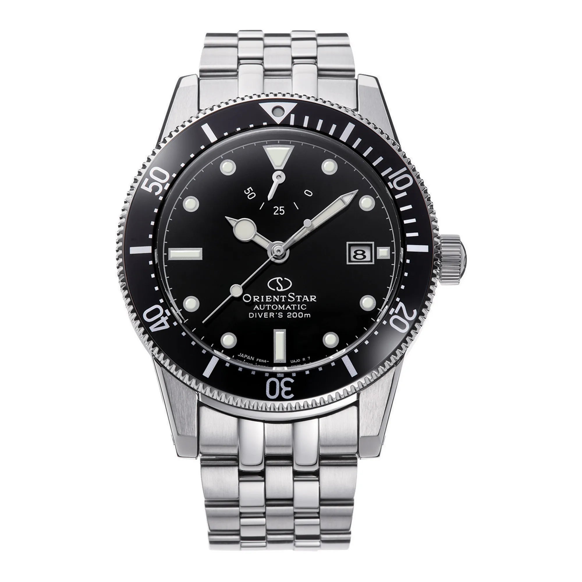 Scopri la collezione Sports di ORIENT STAR, l'eccellenza nell'orologeria da uomo. L'orologio Diver 1964 II di ORIENT STAR è un connubio di design e ingegneria, ideale per chi che cerca prestazioni estreme e stile impeccabile. Questo robusto orologio subacqueo da uomo presenta una cassa rotonda in acciaio inossidabile, con un diametro di 41mm e uno spessore di 15mm. La ghiera girevole unidirezionale con funzione conto alla rovescia è cruciale per le immersioni, mentre l'impermeabilità fino a 200 metri lo rende uno strumento professionale per gli amanti del mare e degli sport acquatici. La protezione è garantita da un vetro zaffiro resistente ai graffi, assicurando una leggibilità perfetta. Corona e fondello a vite contribuiscono alla sicurezza e resistenza all'acqua. La chiusura deployante pieghevole con pulsante di sicurezza offre una tenuta salda e confortevole. Lancette e indici luminescenti garantiscono visibilità eccezionale anche in condizioni di scarsa luce, un dettaglio fondamentale per gli orologi da immersione. Al cuore di questo segnatempo batte il movimento meccanico a carica automatica ORIENT F6N47. Questo calibro di alta precisione, dotato di 22 rubini, offre una riserva di carica sul quadrante, carica manuale, funzione hacking per sincronizzazione precisa e un pratico datario. La sua precisione giornaliera di +25/-15 secondi testimonia l'attenzione ai dettagli e la qualità costruttiva giapponese. Con un peso di 180 grammi, questo orologio sportivo unisce solidità e comfort. È fornito con una garanzia internazionale ORIENT STAR di 2 anni, a testimonianza della sua eccellenza. Inoltre, per massimizzare versatilità e stile, include un pratico cinturino di ricambio. L'orologio ORIENT STAR Diver 1964 II è l'accessorio definitivo per chi non scende a compromessi tra funzionalità, eleganza e avventura. Un orologio automatico che esprime l'anima autentica dello spirito sportivo, perfetto per chi cerca un orologio resistente, affidabile e con un design iconico, un must-have per gli appassionati di alta orologeria.