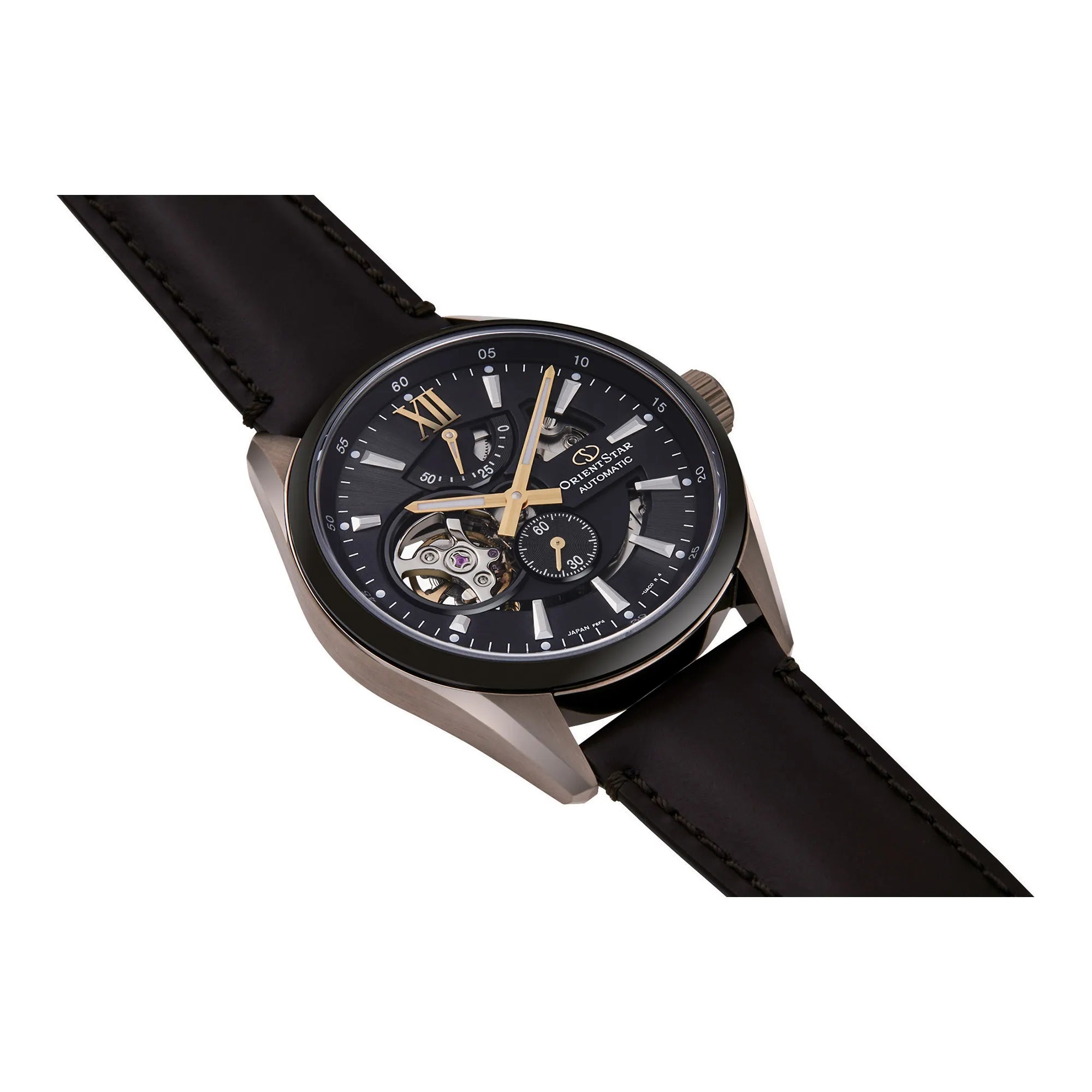 Scheletratura come segno distintivo: ponti a vista e bilanciere in movimento costruiscono una scena dinamica. Indici applicati e lancette dal profilo netto mantengono ordine e leggibilità, mentre la minuteria perimetrale guida lo sguardo tra i diversi livelli del quadrante. Finiture alternate e lavorazioni a raggiera amplificano i giochi di luce. Vetro zaffiro e fondello trasparente sottolineano la cura costruttiva. Bracciale in acciaio o cinturini in pelle, secondo le varianti. Equilibrio tra tecnica esibita ed eleganza quotidiana.