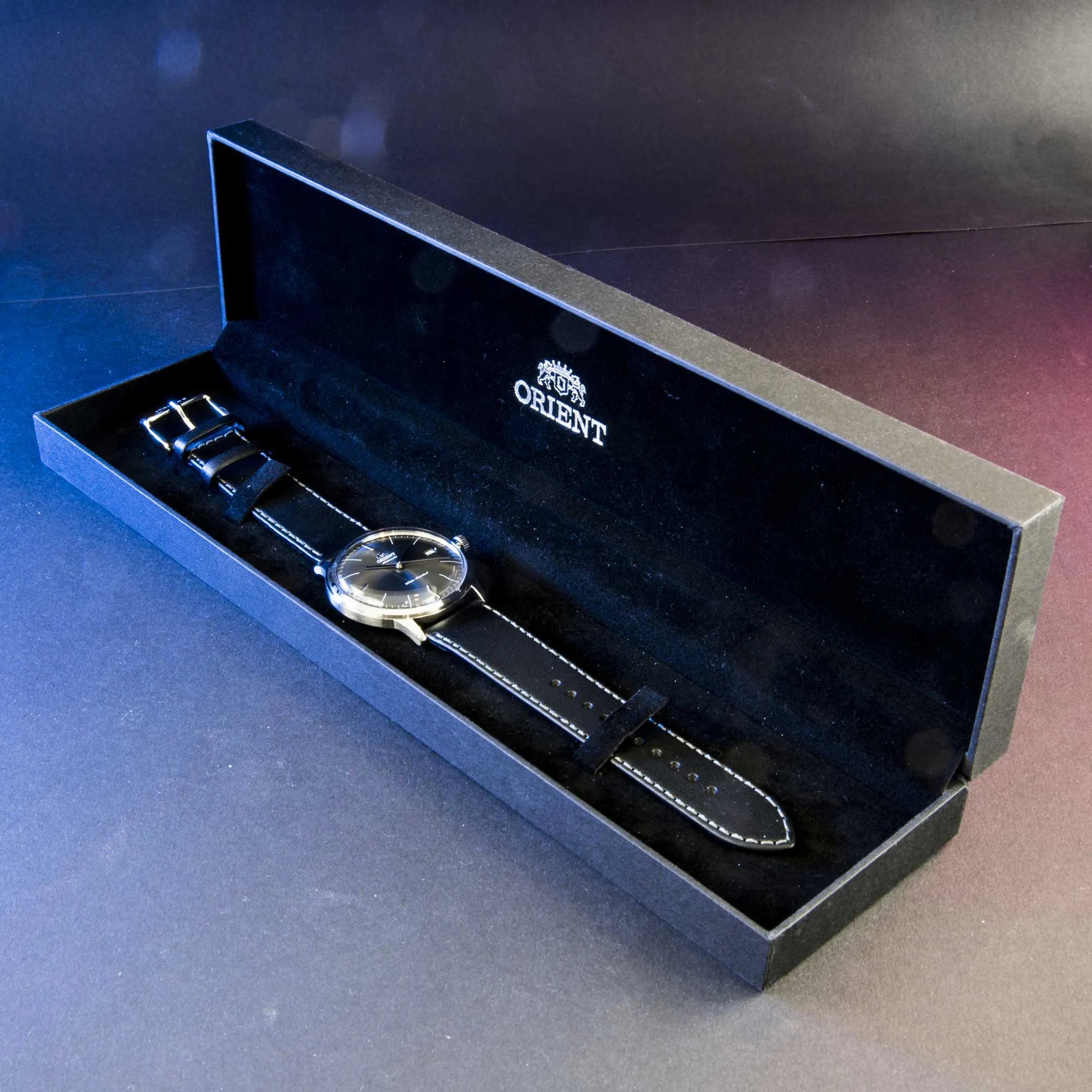Un classico da abito in chiave rétro: vetro bombato e quadrante curvo dialogano con una grafica a numeri romani e minuteria chemin de fer, dettagli che richiamano i segnatempo da cerimonia. Sfere affusolate e proporzioni bilanciate favoriscono una lettura pulita, mentre la finestra data si integra con discrezione. Cinturini in pelle ampliano le combinazioni, dalle tonalità formali ai toni caldi di nuova ispirazione. Finiture lucide e satinate ne accentuano il profilo, comodo sotto il polsino.