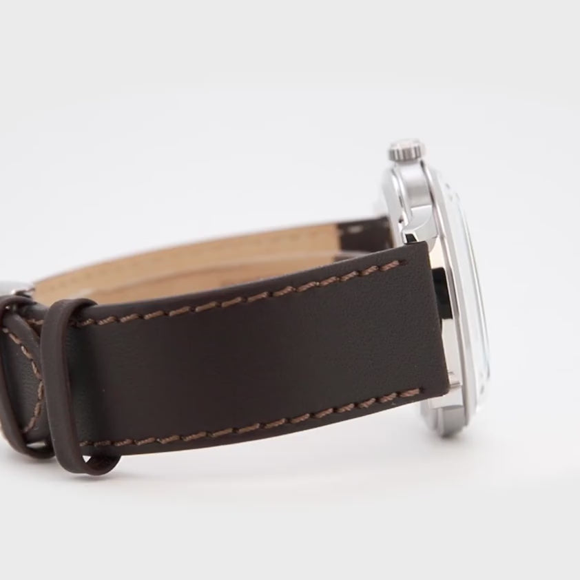 Un classico da abito in chiave rétro: vetro bombato e quadrante curvo dialogano con una grafica a numeri romani e minuteria chemin de fer, dettagli che richiamano i segnatempo da cerimonia. Sfere affusolate e proporzioni bilanciate favoriscono una lettura pulita, mentre la finestra data si integra con discrezione. Cinturini in pelle ampliano le combinazioni, dalle tonalità formali ai toni caldi di nuova ispirazione. Finiture lucide e satinate ne accentuano il profilo, comodo sotto il polsino.