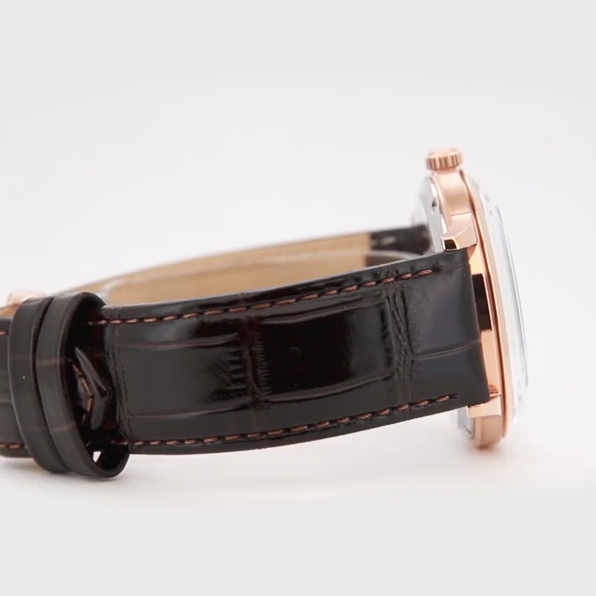 Un classico da abito in chiave rétro: vetro bombato e quadrante curvo dialogano con una grafica a numeri romani e minuteria chemin de fer, dettagli che richiamano i segnatempo da cerimonia. Sfere affusolate e proporzioni bilanciate favoriscono una lettura pulita, mentre la finestra data si integra con discrezione. Cinturini in pelle ampliano le combinazioni, dalle tonalità formali ai toni caldi di nuova ispirazione. Finiture lucide e satinate ne accentuano il profilo, comodo sotto il polsino.