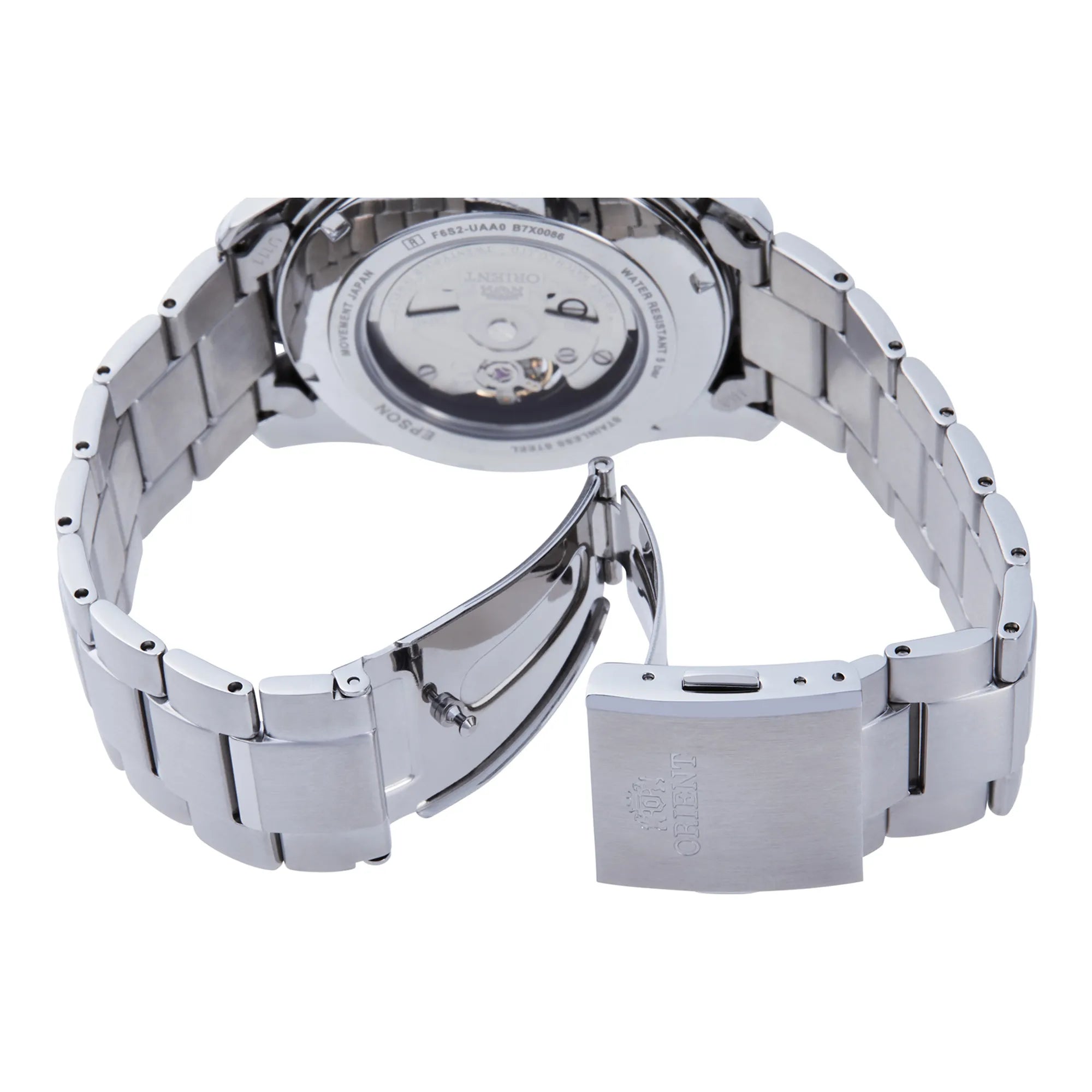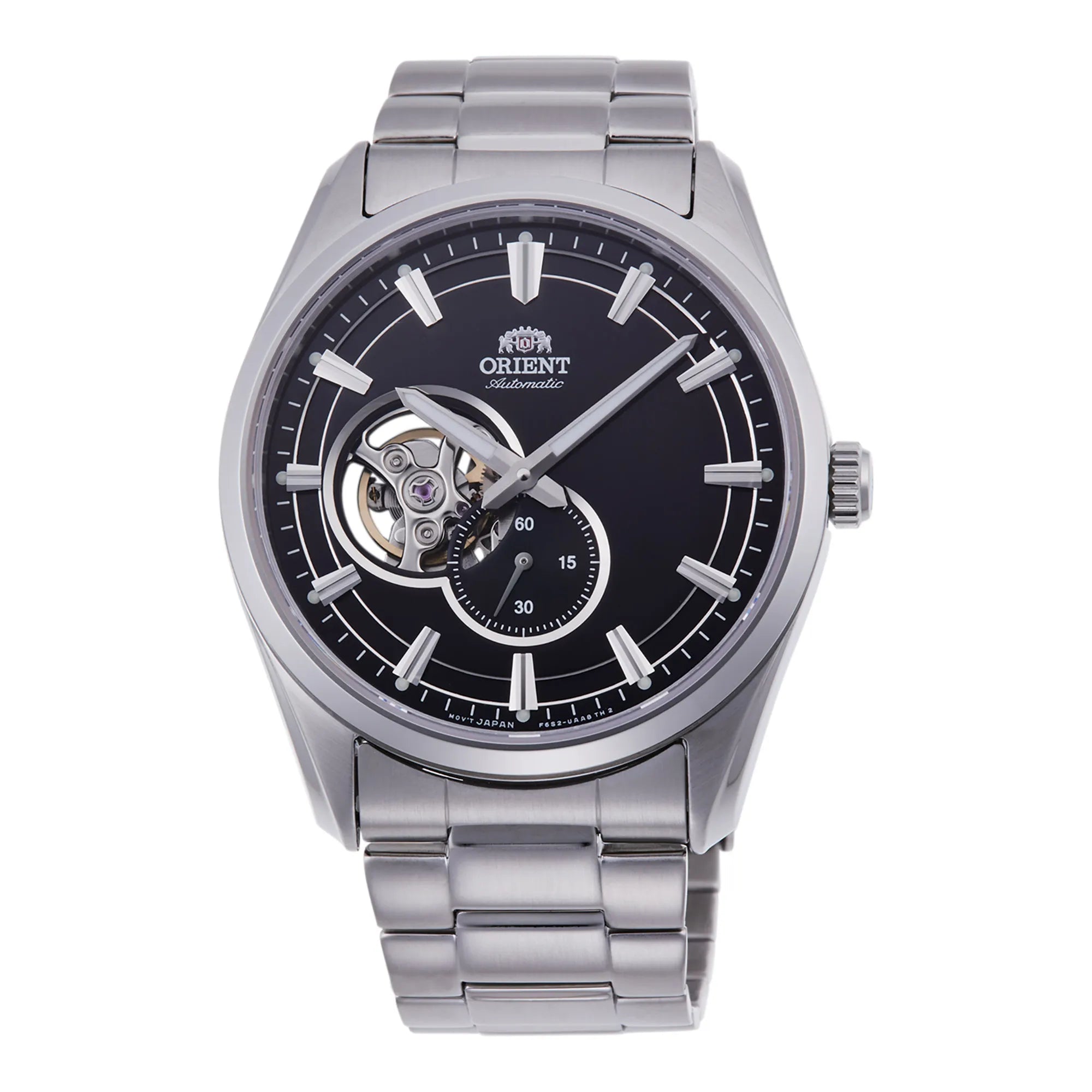 Quadrante con anima a vista e piccoli secondi in dialogo: la finestra semi-skeleton si sovrappone al contatore creando profondità e ritmo. Cassa dal segno deciso e grafica ordinata privilegiano la leggibilità, mentre finiture radiali e palette dal bianco all’azzurro, al verde e al rosso aggiornano l’estetica. Il fondello trasparente svela il movimento di manifattura. Il bracciale in acciaio completa un equilibrio tra carattere tecnico ed eleganza quotidiana.